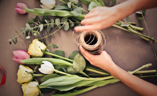 Manipulate the scissor to cut flower stems and put the flowers into the flower foam contributes on children’s fine motor skills.